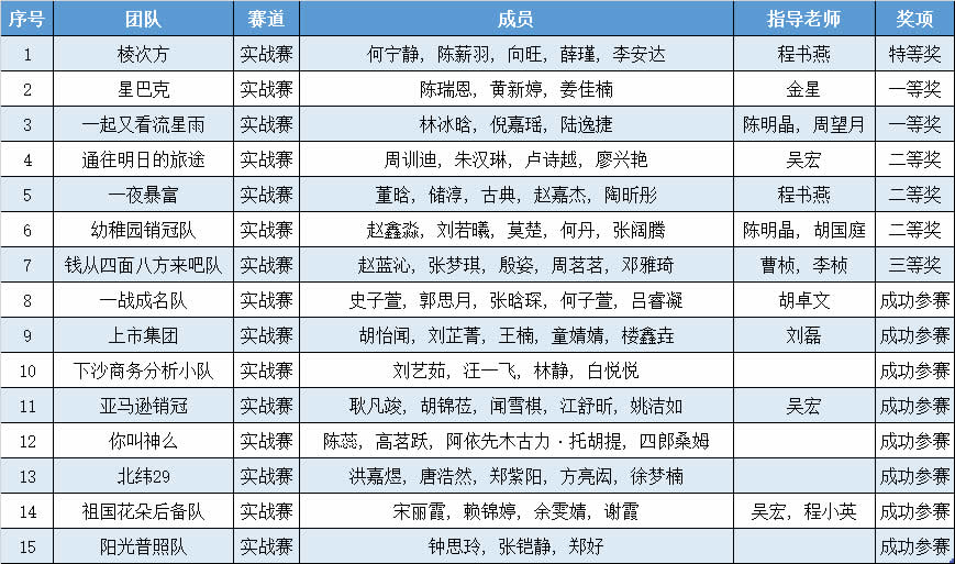 H次元 第十九届电子商务竞赛已圆满结束,本次竞赛分为常规赛道和实战赛道,共有来自全校的978名同学组队报名参赛,最终提交有效作品138份,经过初赛的匿名评审和决赛的现场答辩,全部奖项已经产生,现予以公示。