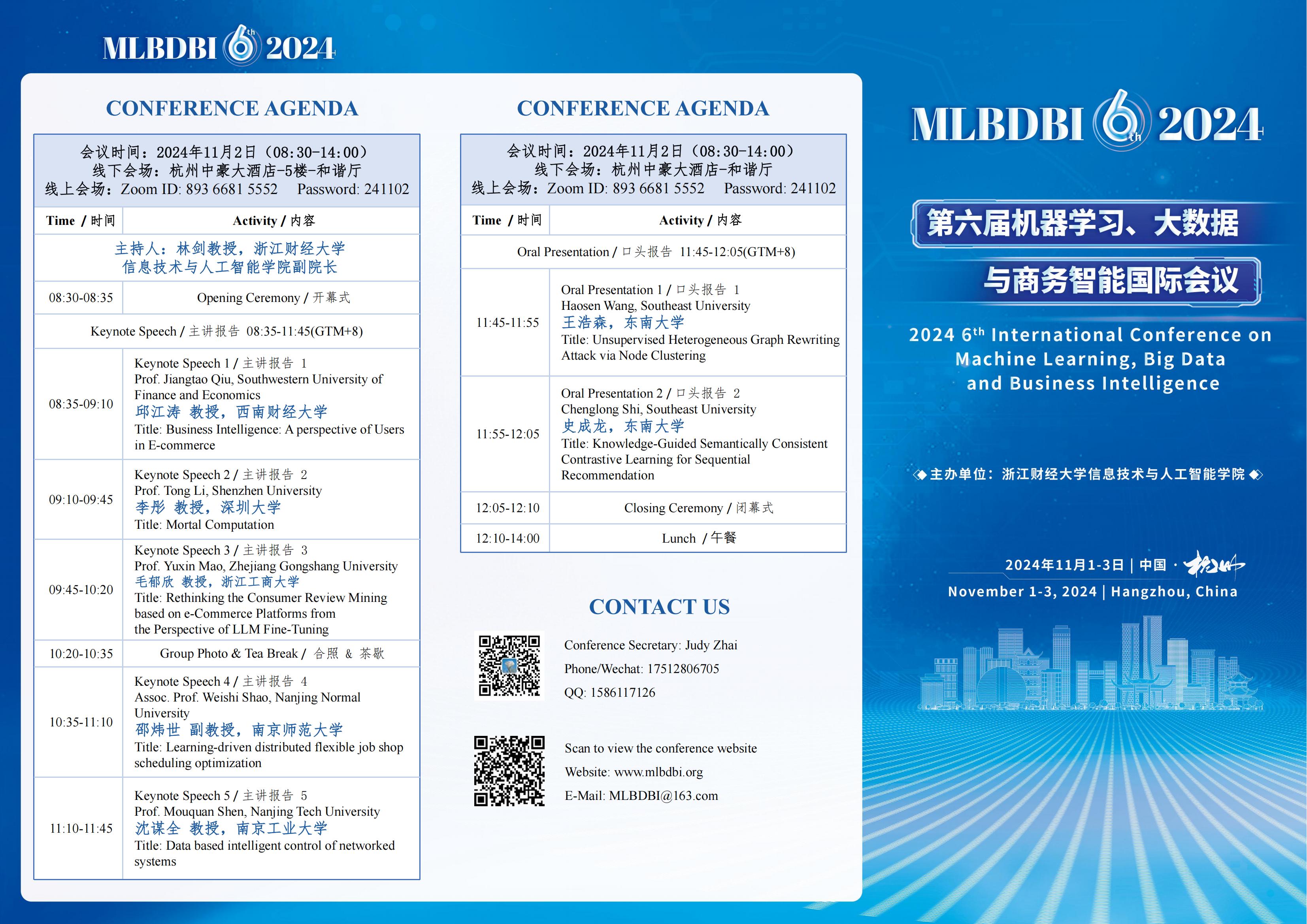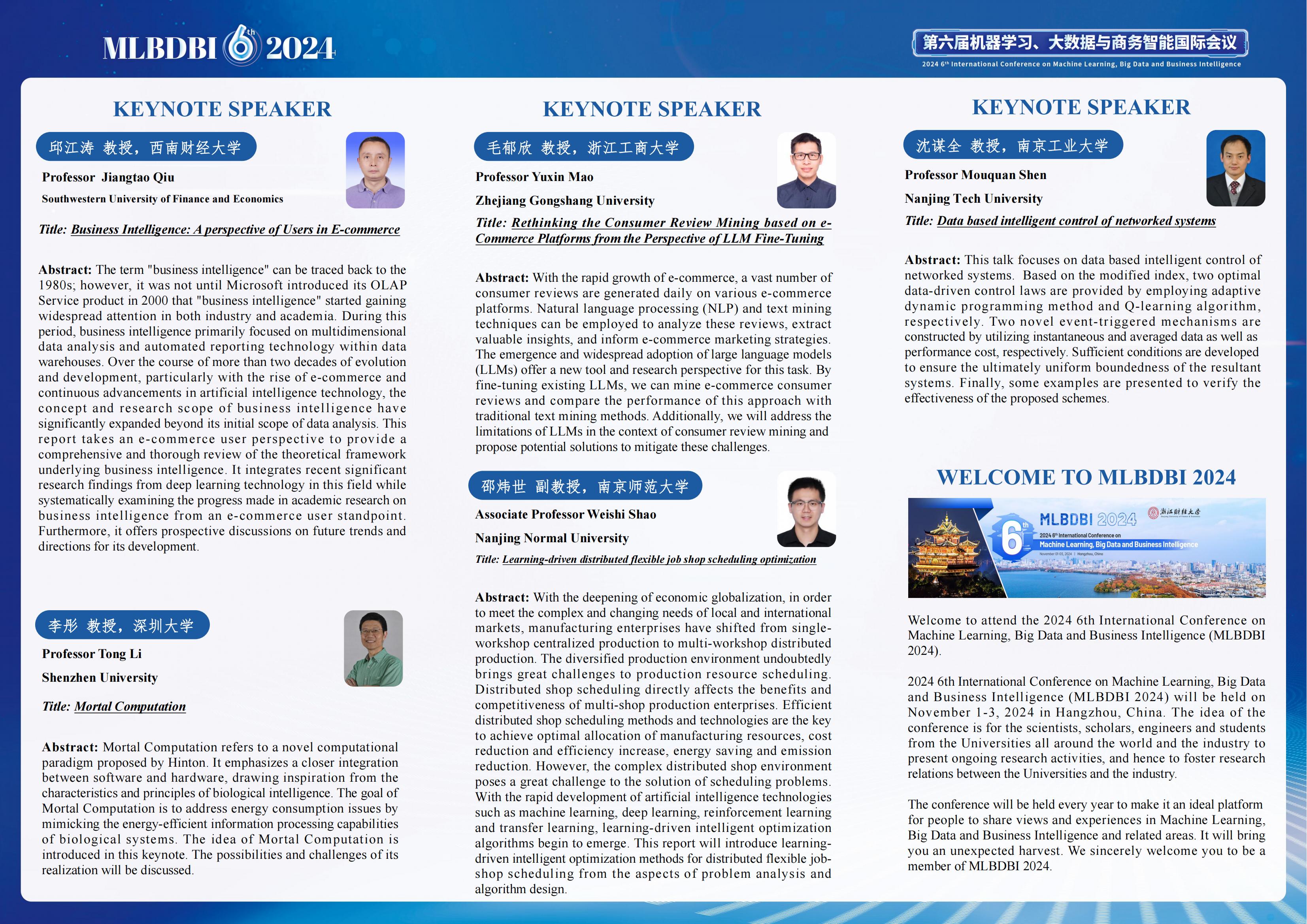 【浙财50周年H次元 学术论坛活动】第六届机器学习、大数据与商务智能国际会议