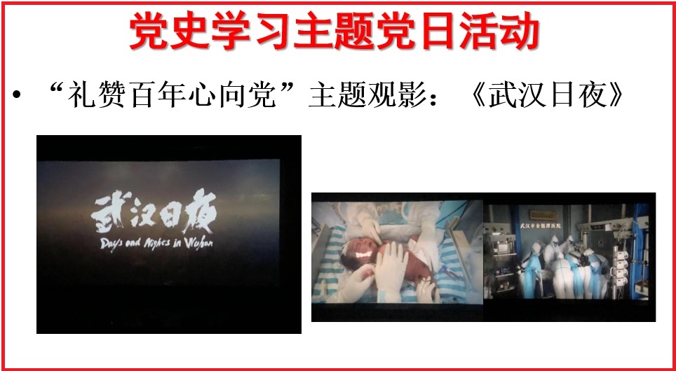 会上,党员老师们首先进行了党史、新中国史、改革开放史、社会主义发展史等主题学习,然后观看了《初心使命》的学习视频,寻访红色足迹、祭奠革命先烈,最后通过《武汉日夜》的主题观影,更加深刻地感受到在疫情面前,我党不畏艰难不惧险阻的时代先锋性,也更加深入地体会到习近平总书记的讲话:只有坚持思想建党、理论强党,不忘初心才能更加自觉,担当使命才能更加坚定,要把学习贯彻党的创新理论作为思想武装的重中之重,并同学习。