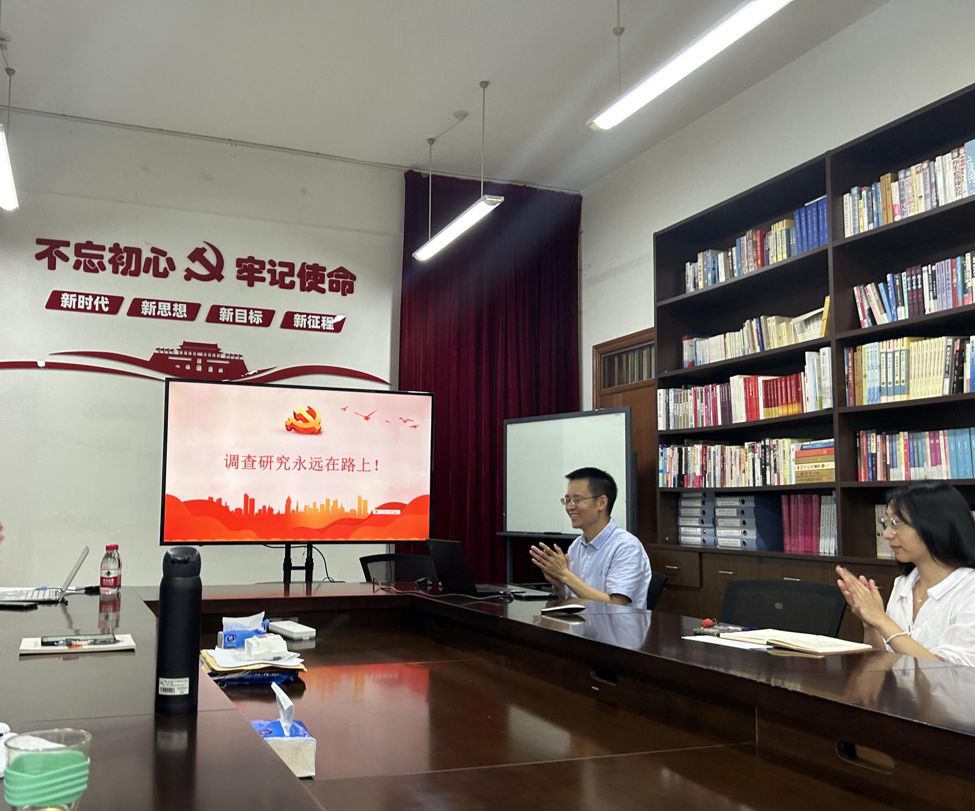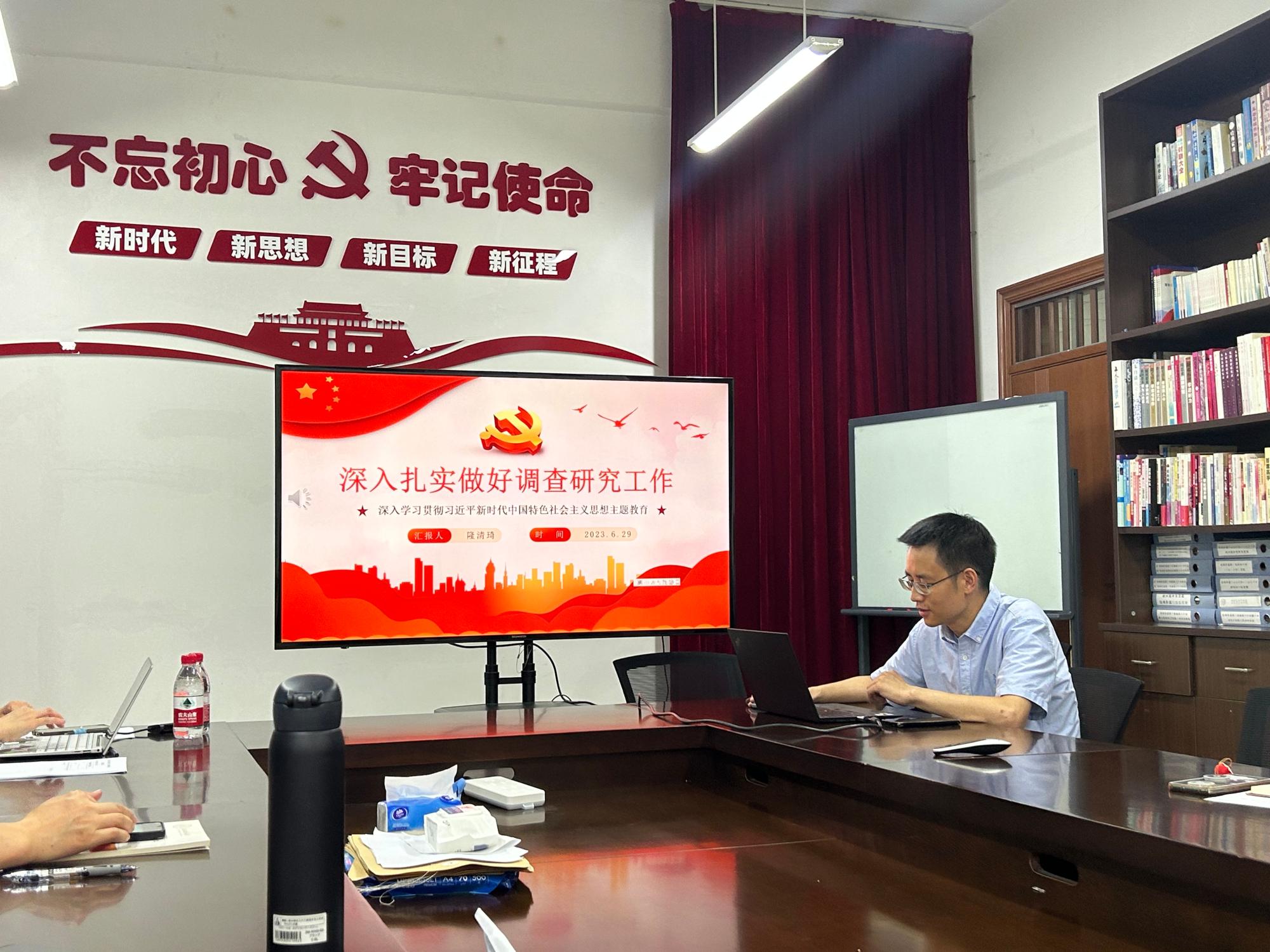 首先,隆清琦副院长带领支部老师回顾了习近平总书记履新浙江的调查研究事迹,然后,从“深刻认识在全党大兴调查研究的重要意义”、“调查研究要讲究科学方法”、“提高调查研究实效”三个方面展开讲述。