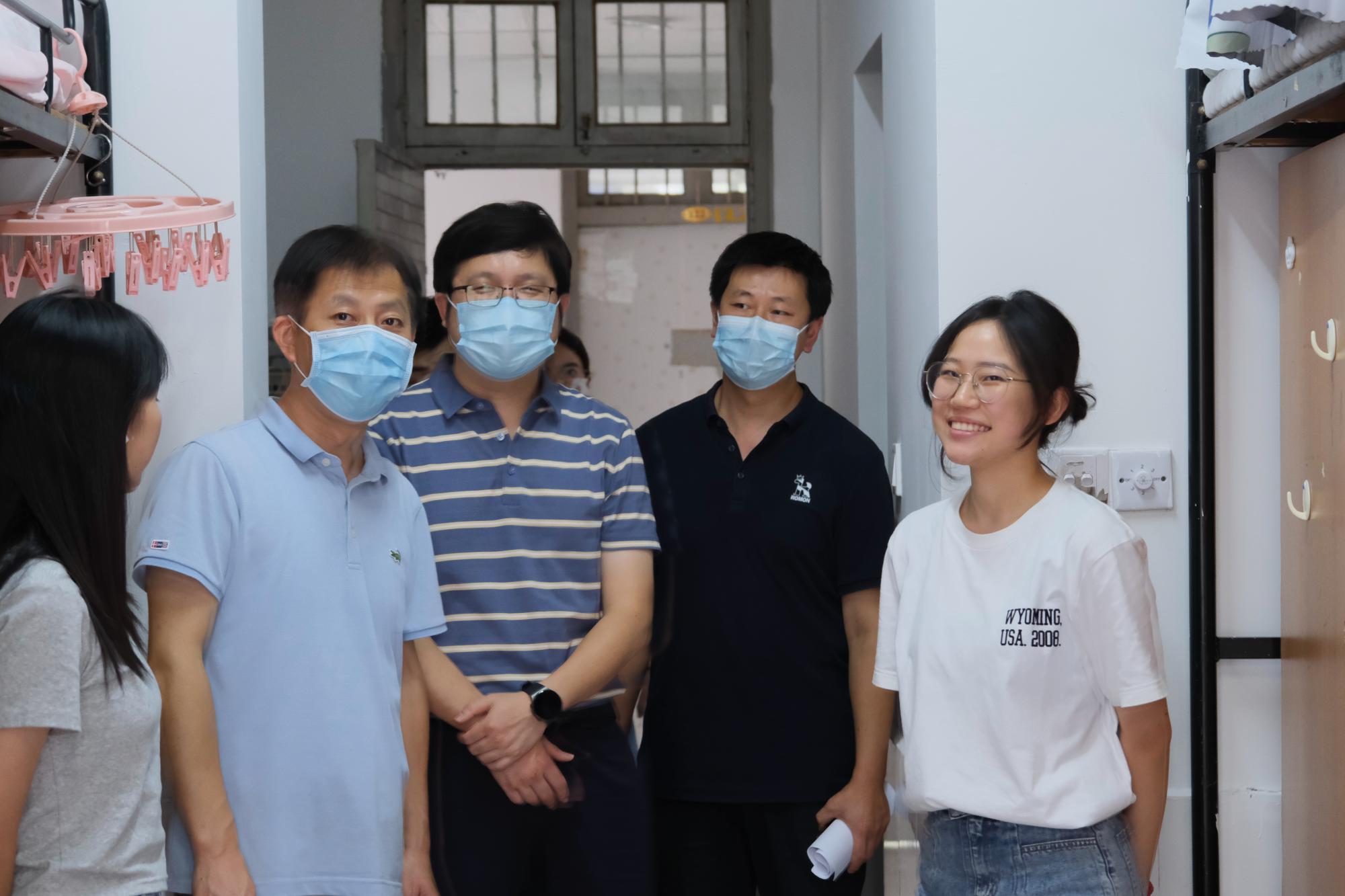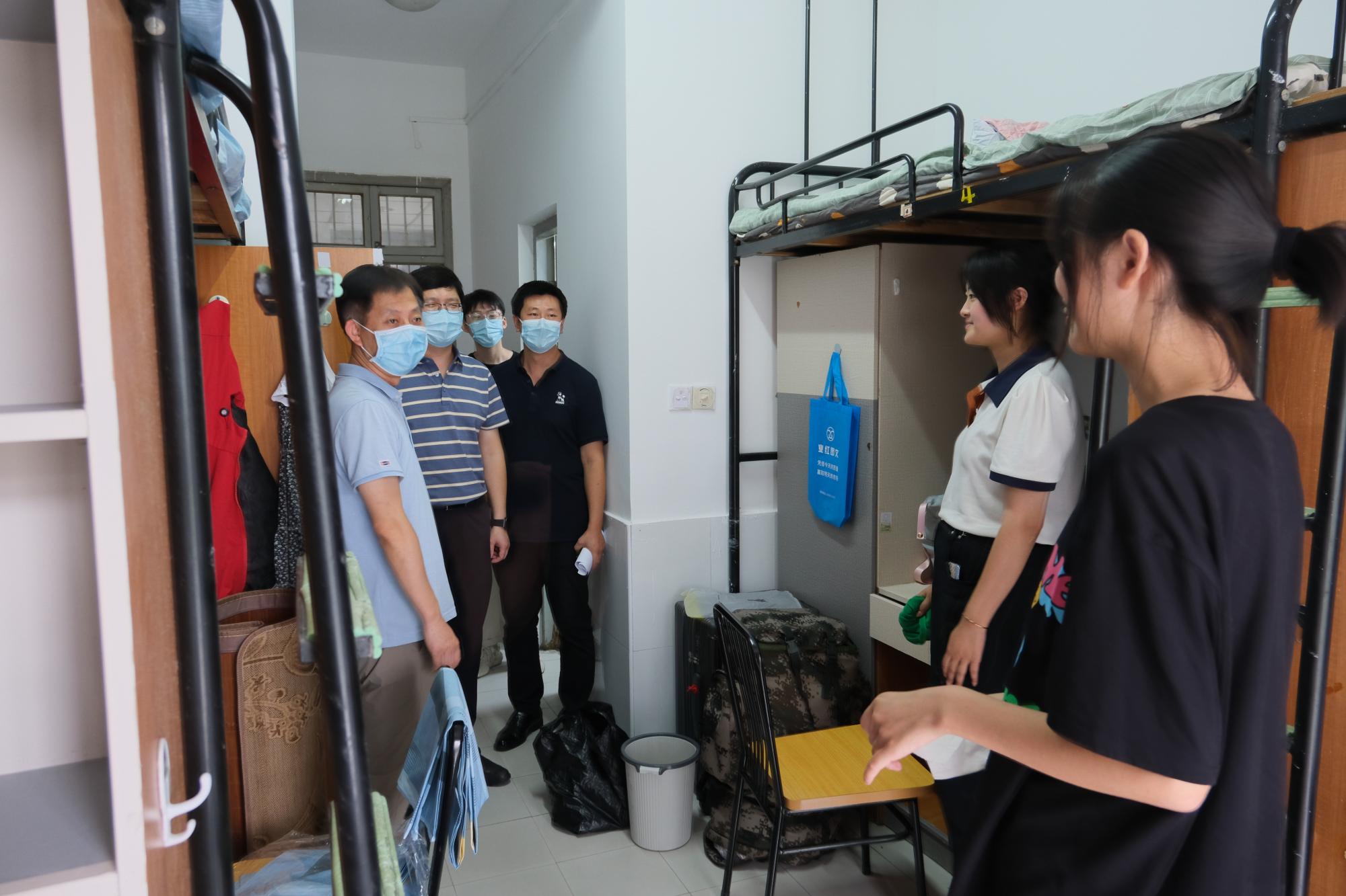 喜迎2022级本科新生入学报到。下午,为了解新生入住情况,强化新生安全意识,院长张帅、院党委书记徐奇伟、院党委副书记田聪、院团委书记毛立晨以及新生辅导员马硕共同走访了新生寝室,为刚刚加入H次元