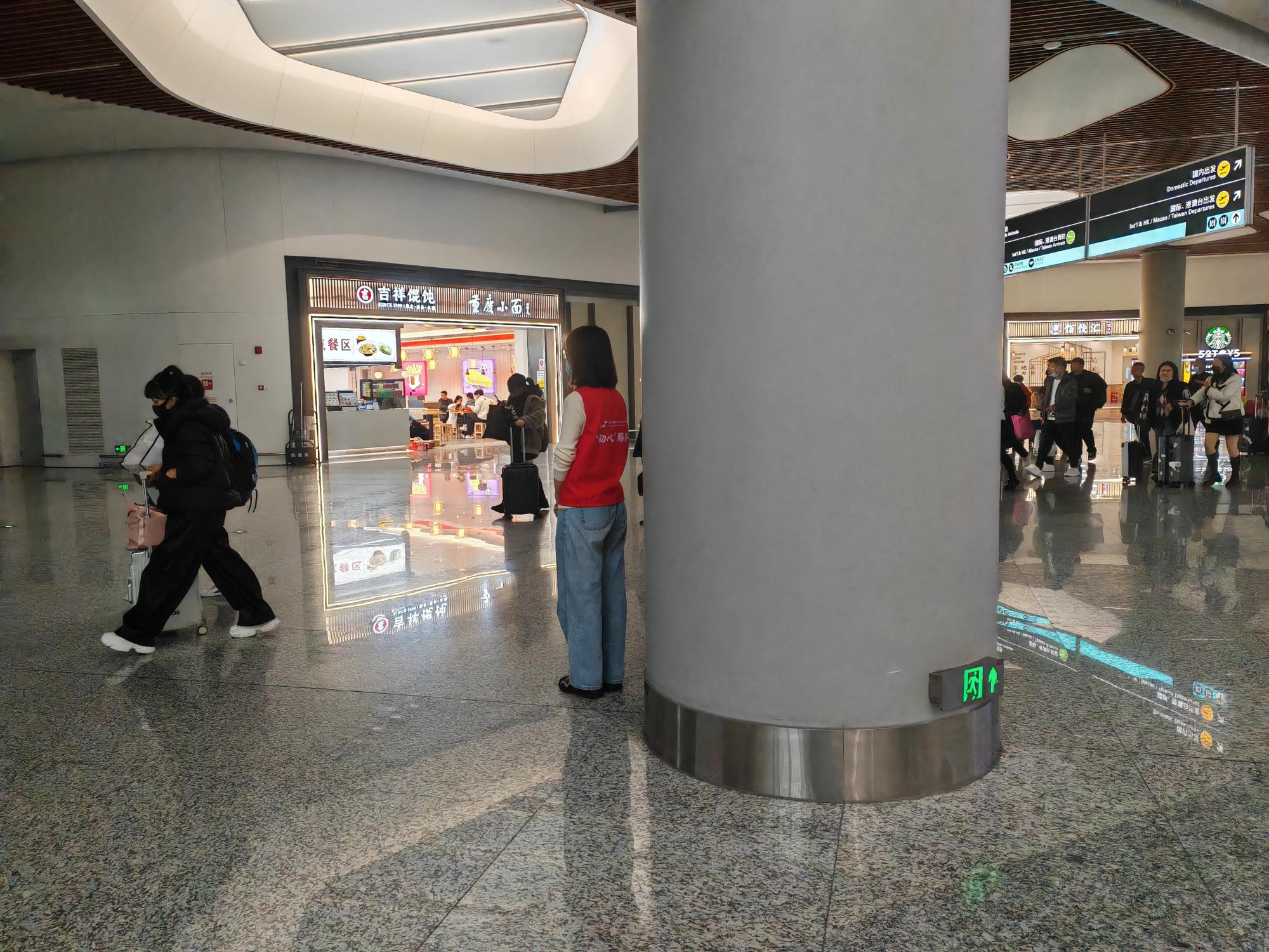 活动中,同学们身披红马甲,成为机场服务大厅一道亮丽的风景线。热情地帮助,耐心地解答,亲切地指引,收获乘客、机场工作人员的连连“点赞”。H次元