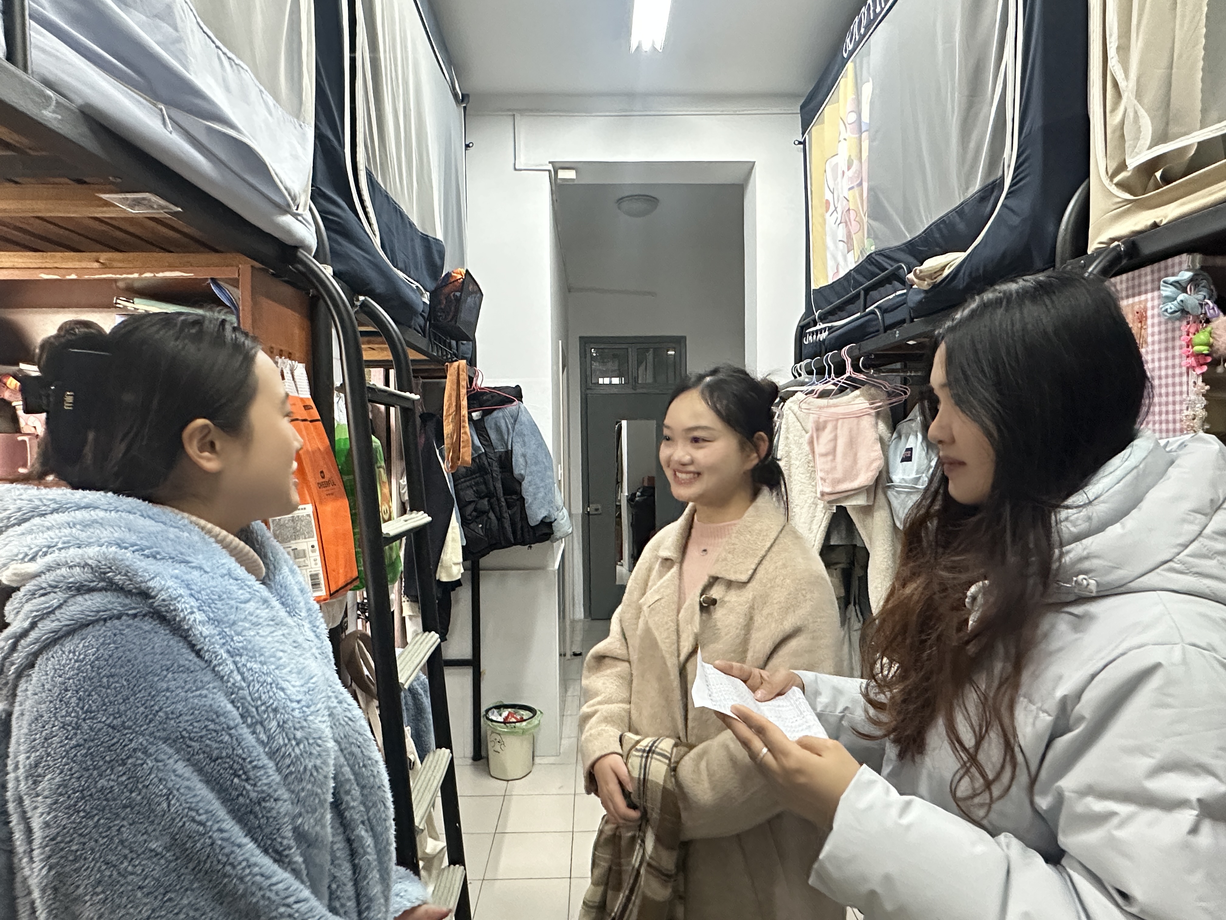 走访中,老师们不仅关心同学们的日常生活,更将学风教育、考试诚信教育及安全教育融入其中,与同学们面对面交流互动。
