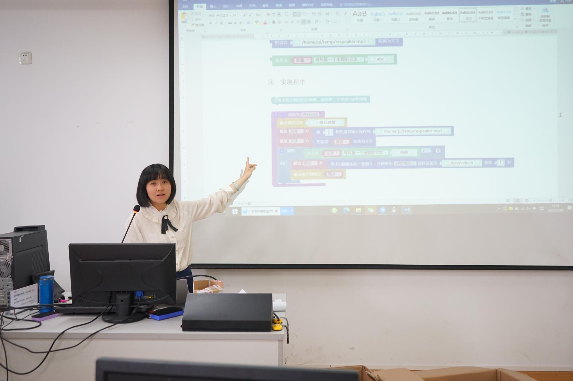 党委在党史学习教育过程中始终坚持创新工作方法,重视将党史学习教育接地气、入人心。作为《智能时代》课程的主讲老师,朱凌老师充分发挥“双带头人”作用,积极尝试创新人才培养模式,改革教学方法,将“党史教育+前沿技术”融入到日常教学中,既是向学生传授科学文化知识、培养创新思维的深耕者,也是帮助学生锤炼品格意志、厚植爱国主义情怀的引路人。朱老师认为:“没有哪个时代,科技与我们的距离是如此之近。习近平总书记曾强调,‘人工智能是引领新一轮科技革命和产业变革的战略性技术,具有溢出带动性很强的头雁效应’。而‘人工智能’这一概念在传统教学中似乎只能停留在纸面上苍白讲解。这时候,作为教师的自己突然感觉,我们仿佛与时代的距离又太远。怎么教?才能教的好?太难了!但我坚信,教定以引领时代为使命。所以,我决定改变教学模式,推陈出新,让学生在课堂上直接淋漓尽致地感受人脸识别、文字识别、语音合成/识别与控制、机器翻译等人工智能、物联网前沿技术。同时,将党史教育、爱国主义教育融入到新兴科技的教学当中,培养青年学生建立辩证的工程科学观,激发他们投身祖国伟大建设事业的热情与斗志。因为,习近平总书记说过:青年兴则国家兴,青年强则国家强。青年一代有理想、有本领、有担当,国家就有前途,民族就有希望。帮助青年学生系好人生的第一粒扣子——这是我们作为教育者的责任与担当!”
