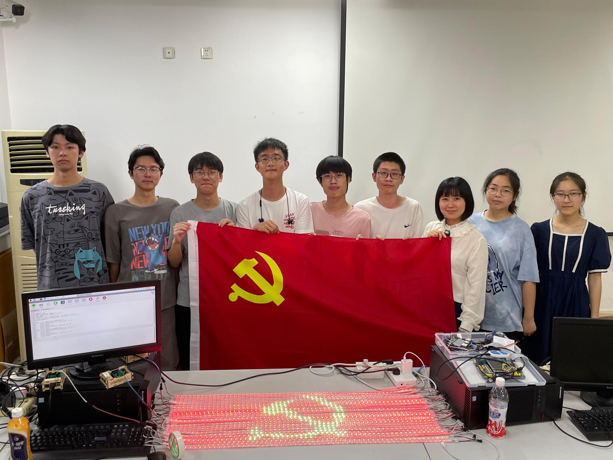 围绕“礼赞百年心向党”的主题——让现代科技与党史教育碰撞出新的火花,朱凌老师带领着智能时代中的红心少年们用数十条灯带通过树莓派编程创作,动感绘出了一个大大的党徽,用程序员独有的浪漫方式,向中国共产党成立一百周年献上了自己最美好最热忱的祝福。