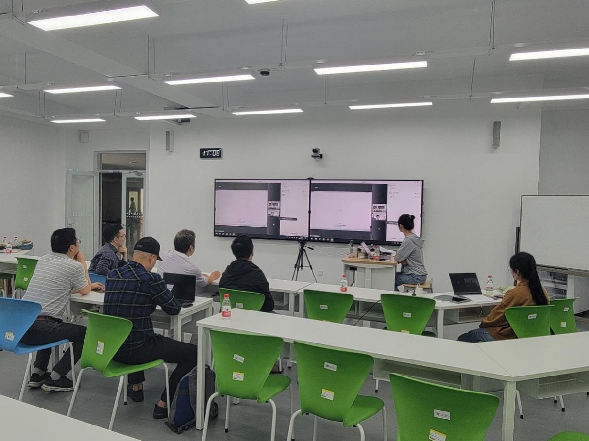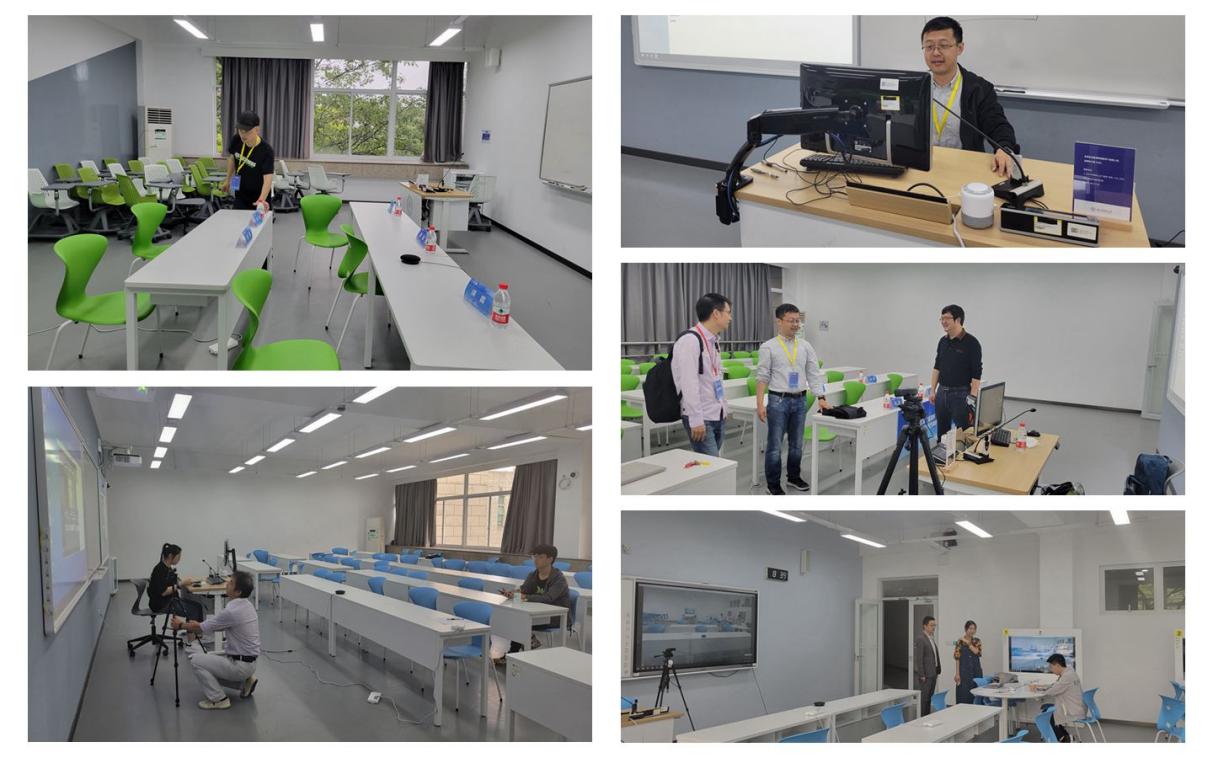 教工第三党支部从桌位的摆放、摄像头角度、拾音器的位置、志愿者提问等多角度出发,营造环境美观、视频流畅、志愿者精神饱满的赛事答辩环境。
