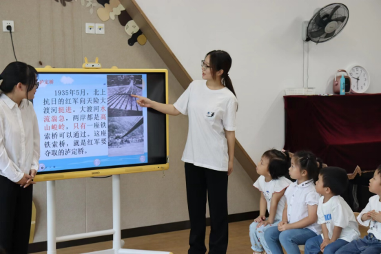 学生第三党支部接着进入教室,和小朋友们进行党史小故事分享的教学活动。讲述红军长征、飞夺泸定桥、狼牙山五壮士等党史小故事,进行爱国主义教育,了解我党发展路上的艰难历程,学习坚韧不拔的红军精神。讲述过程中,小朋友们认真学习党史知识,踊跃发言提问。H次元