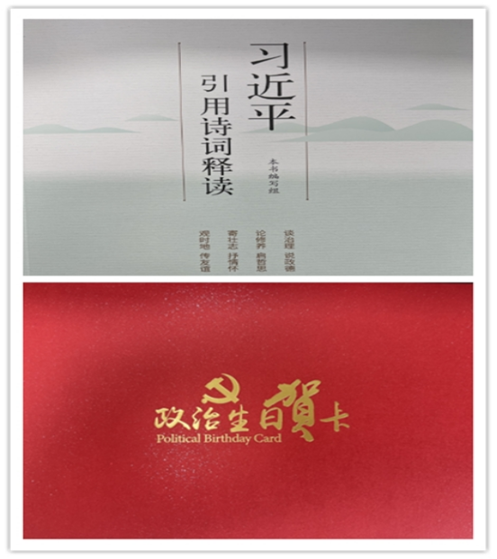 为党育人,为国育才,为浙财育“金生”,是每位信智人的使命。6月28日,学院党委为考研的党员、入党积极分子送去了组织的温暖与关爱,精心为他们准备了一份特殊的“七一”礼物:《习近平引用诗词释读》和政治生日贺卡。一张贺卡一本书,搭建党组织与党员之间的‘连心桥’,增强学生党员和入党积极分子的荣誉感、责任感和归属感,进一步发挥学生党员在思想、学习和工作中模范带头作用。