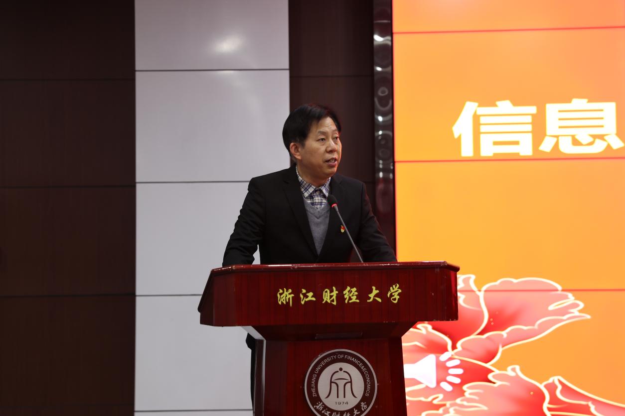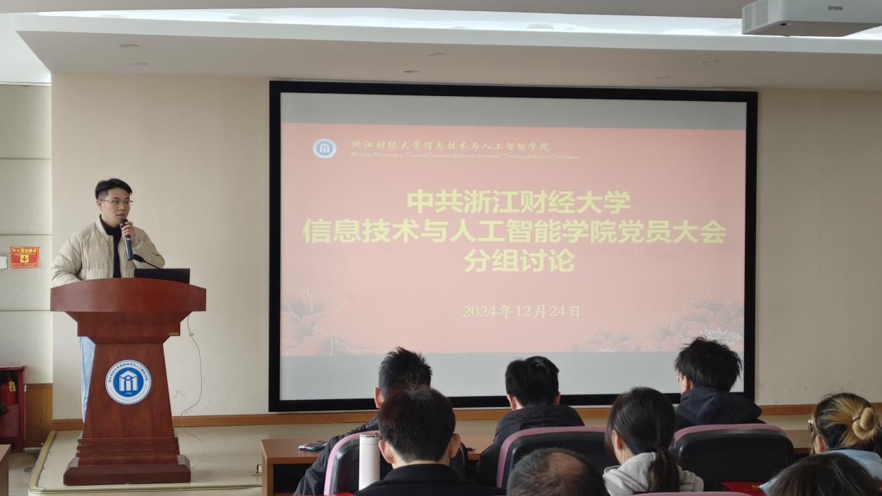 学院党委书记吴翼泽代表党委作题为《满怀信心启新程 改革创新谋发展,为建设国内财经类高校一流计算机学院而努力奋斗》的工作报告。报告从六个方面总结回顾了学院2020年党员大会以来的主要工作和取得的显著成绩,包括党的建设工作全面加强、党建引领育人成果丰硕、人才培养成效持续凸显、人才队伍建设扎实推进、学科专业建设实现突破、服务管理体系逐渐完善等。报告认真总结了学院党的建设和事业高质量内涵式发展道路的宝贵经验,提出了当前发展存在的短板和不足。他强调,要深入领会学校“新财经战略”使命愿景,团结带领全院师生,不断提升学院综合实力和人才培养质量,奋力建设计算机学科特色鲜明、人工智能与经管学科深度融合、部分学科方向有一定国际学术影响力的计算机学院,通过一任接一任的接续奋斗,把学院建设成为国内财经类高校一流计算机学院。