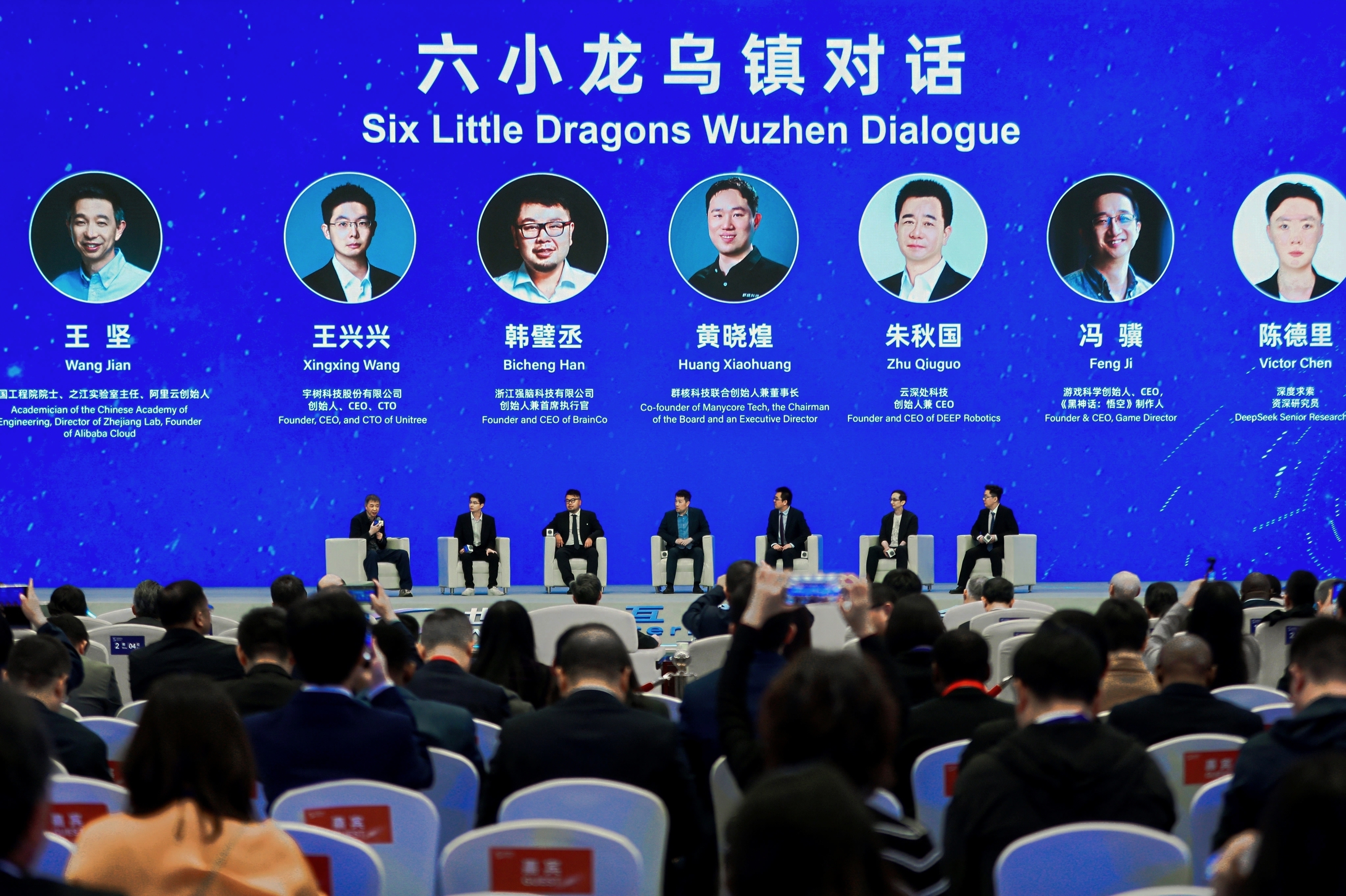 师生在2025年世界互联网大会乌镇峰会主论坛现场。