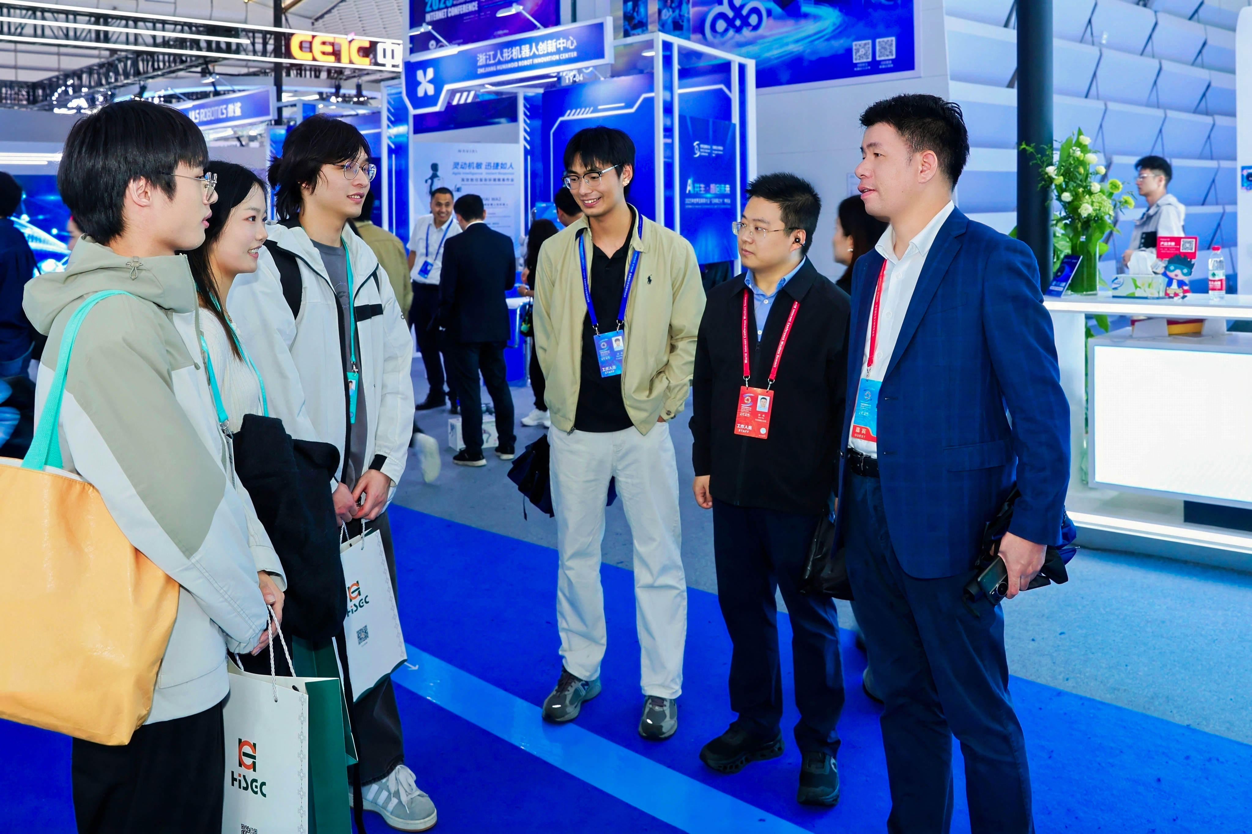 师生亲切交流,勉励同学们要积极把握数字经济和人工智能发展新机遇,主动关注前沿科技,努力将专业所学转化为实际应用,为未来的就业创业和职业发展做好准备。在“互联网之光”博览会现场,学生们认真观摩了全球顶尖的AI技术成果和信息科技应用,并结合自身学术研究领域同参展企业人员进行交流探讨。