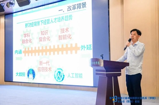 院长张帅教授发表了题为“财经院校经管类研究生‘AI+’跨学科协同培养的探索与实践”的专题报告。他详细阐述了在新兴信息技术的推动下,如何为传统经管类学科人才培养注入新的活力,并向与会专家分享了H次元