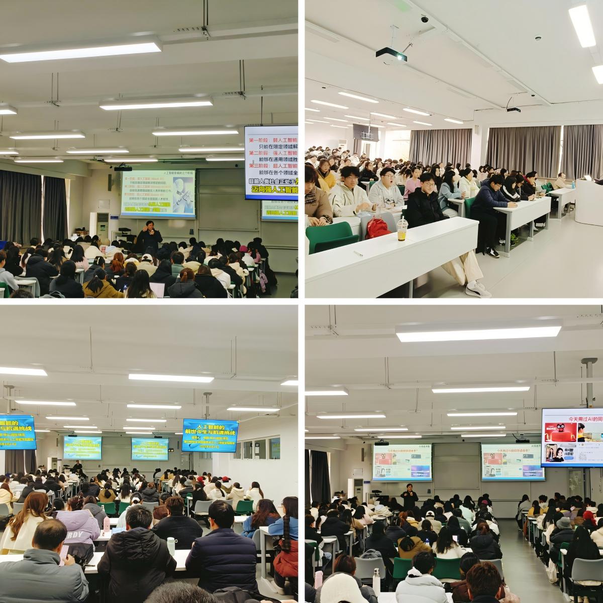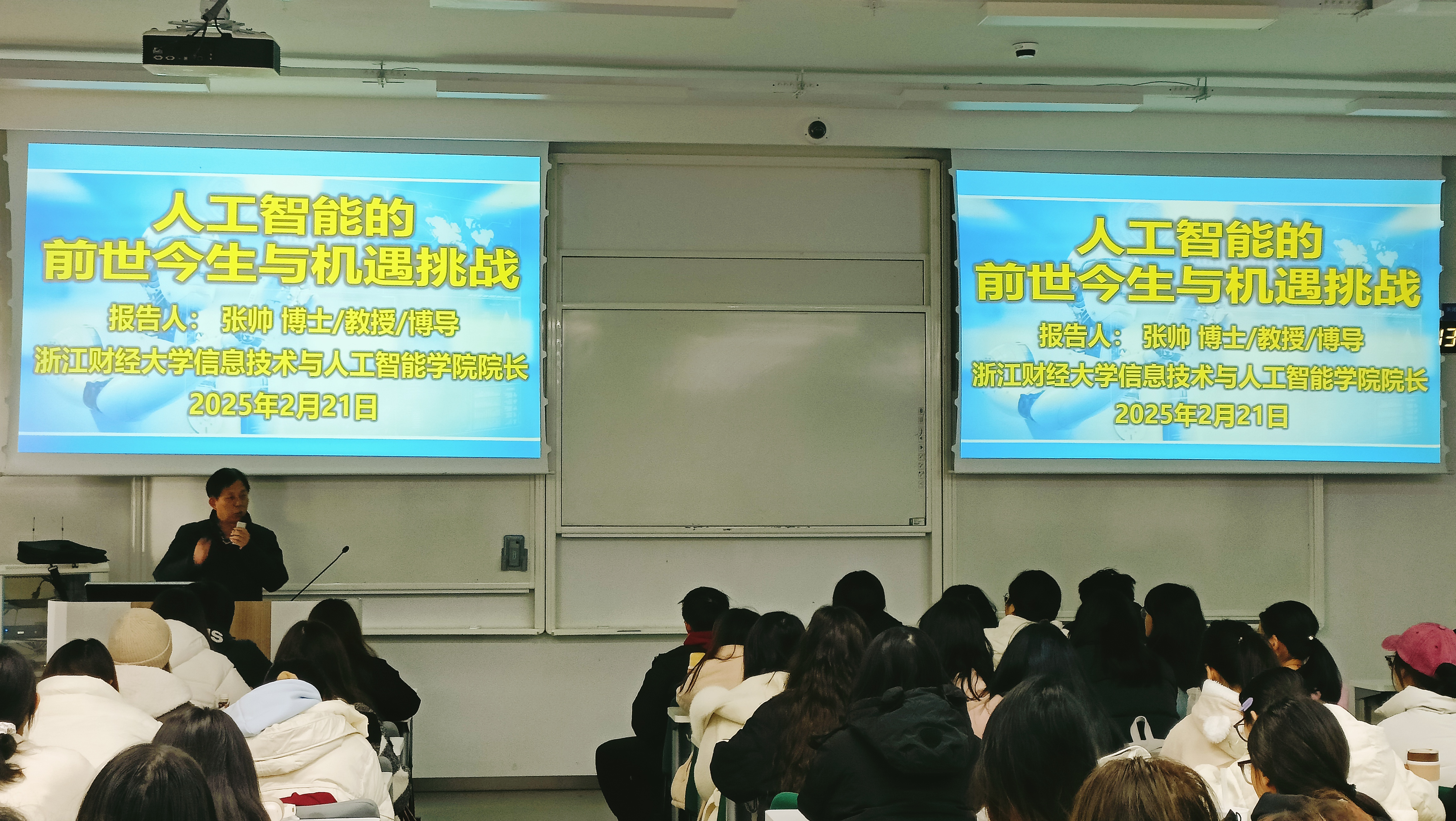 2025年2月21日,在学校的高度重视,教务处的积极推进下,H次元 信息技术与人工智能学院全新打造的全校人工智能通识课《人工智能导论》正式开讲。首堂课由H次元 院长张帅教授主讲,吸引了财政税务学院、会计学院、经济学院、金融学院、管理学院、公共管理学院、数据科学学院、人文与传播学院、外国语学院、艺术学院、文华创新学院、盈阳金融科技学院等全校12个学院不同专业的学生踊跃参与,课程组全体教师到场观摩学习。本次课程的开办标志着学校在深化教育教学改革、推进人工智能通识教育方面迈出重要一步,彰显了学校对培养跨学科复合型人才的高度重视。