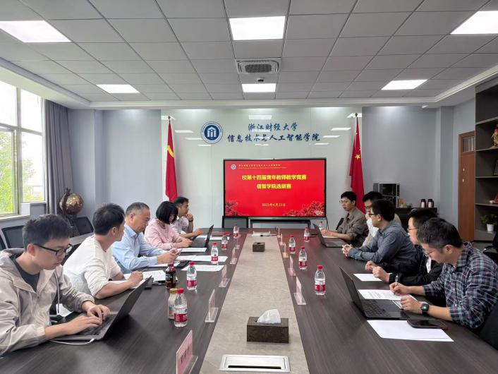 在9404举办了校第十四届青年教师教学竞赛信智选拔赛。本次比赛有幸邀请到浙江树人学院金劲彪、浙江工商大学郝昕两位教授出席,与教学院长朱凌老师、院长助理兼计算机科学与技术系主任陈明晶老师共同担任评委,由教学院长朱凌老师担任主持人,共有4位老师报名参加比赛。