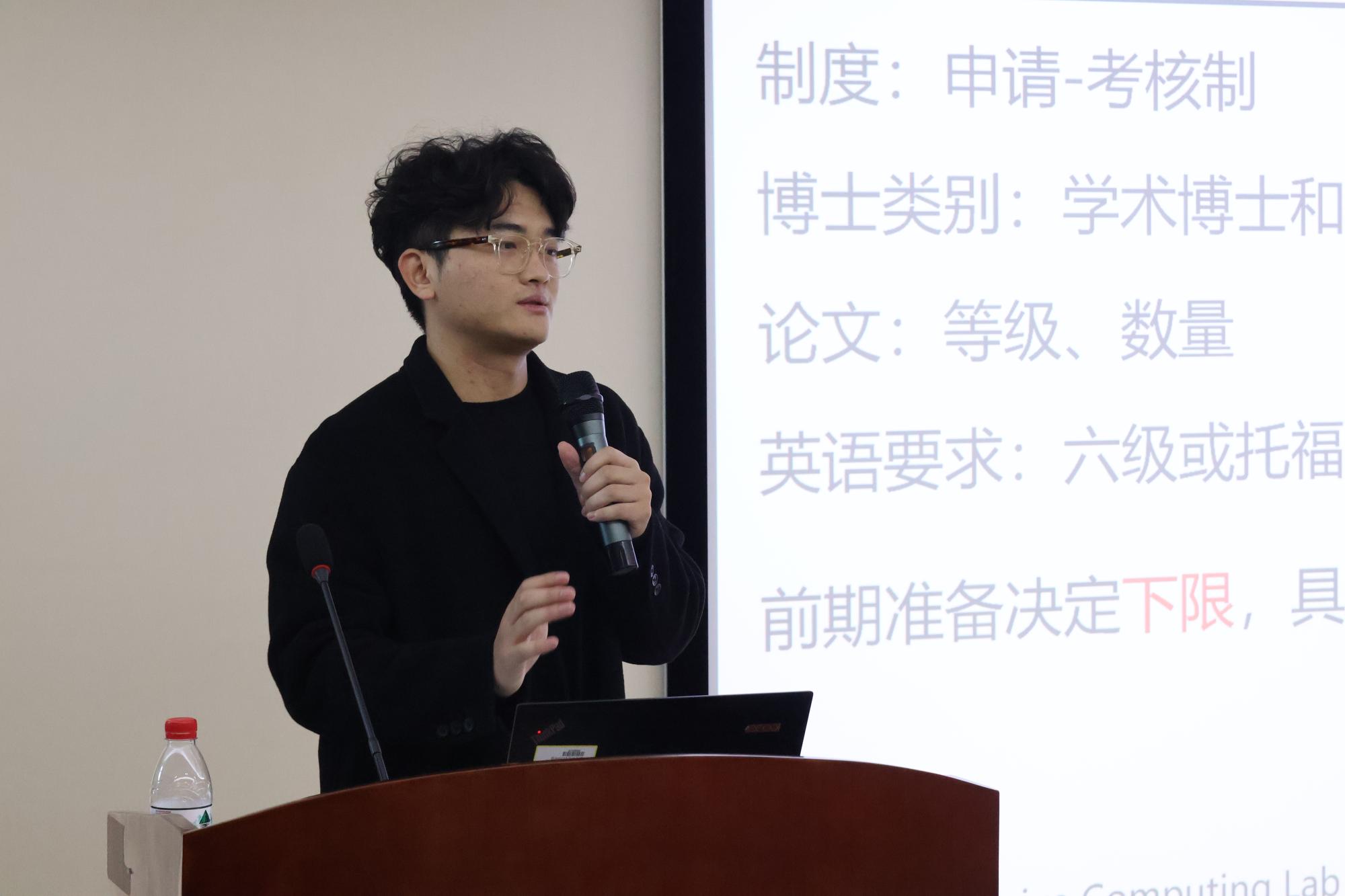 颁奖仪式后,三位获奖代表东南大学在读博士金意伦,浙江大学在读博士竺堃,浙江大学在读博士陈谦,分别向学弟学妹们分享了关于科研和考博方面的经验心得。金意伦校友针对当前人工智能的伦理公平问题,从宏观政策和微观应用角度详细介绍了人工智能伦理公平问题研究的必要性与迫切性,并分享了他近期的研究成果。竺堃校友为大家分享了自己阅读文献的心得,介绍了文献阅读的三次阅读法。陈谦校友分享了自己的申博经验,向大家介绍了申博前期准备、导师见面,及复试问题准备等。分享了对于“高质量论文”、“论文新颖度”的理解,希望尽快多发表高质量论文,为未来提供更多选择。