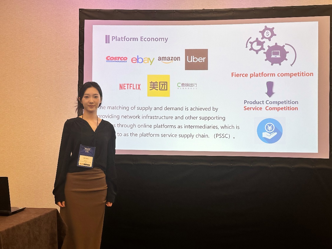 学生刘雨航参加了该次学术论坛,并做了主题为Effects of payment interoperability and non-interoperability on platform competition的学术汇报。同时,认真学习了会议实践领袖论坛、分会场报告,并向多位专家学者请教与学习。