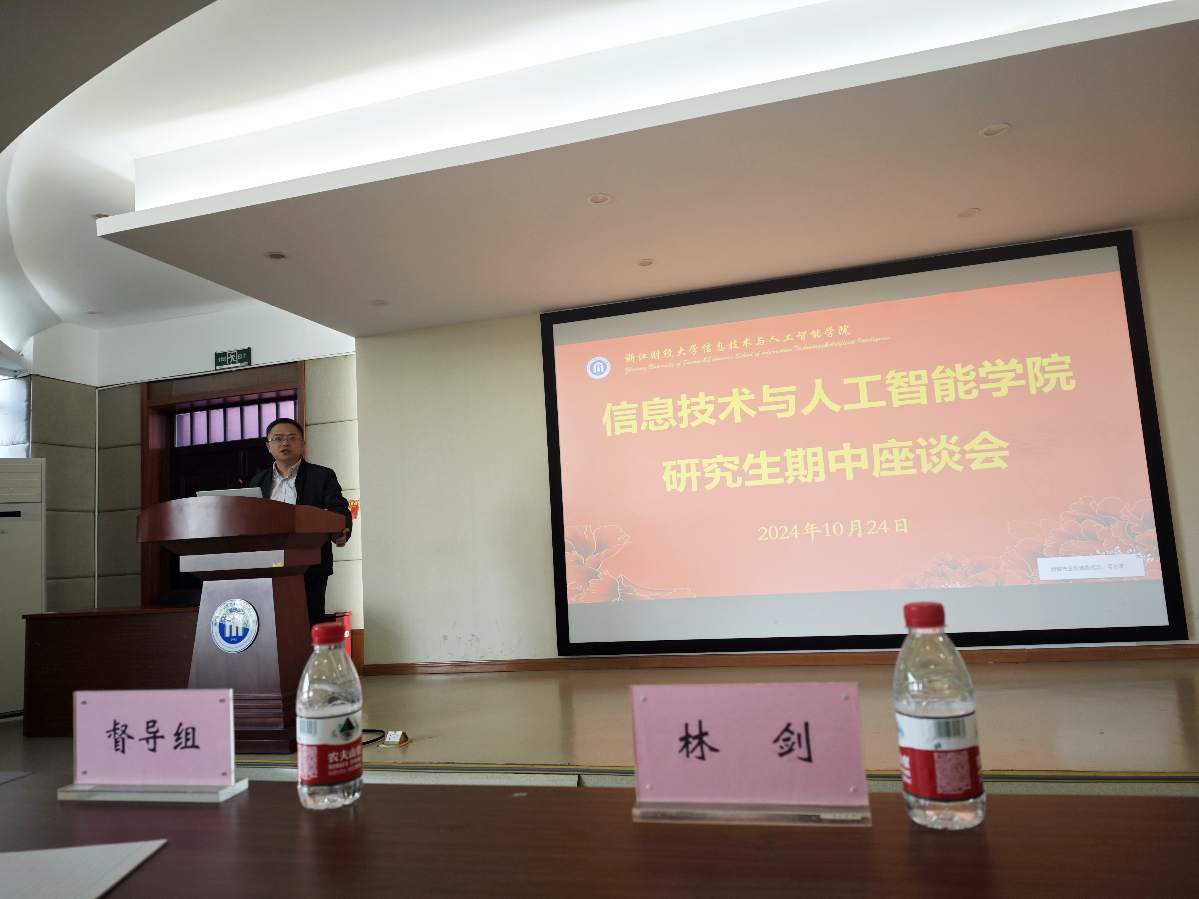 10月24日下午,H次元 在9302会议室召开了2024-2025学年秋学期研究生期中座谈会。此次会议由学院副院长林剑教授主持,研究生教学督导组姚建荣教授、研究生辅导员吴泽勇、研究生秘书杨天亦及2024级全体硕士生和博士生参加。
