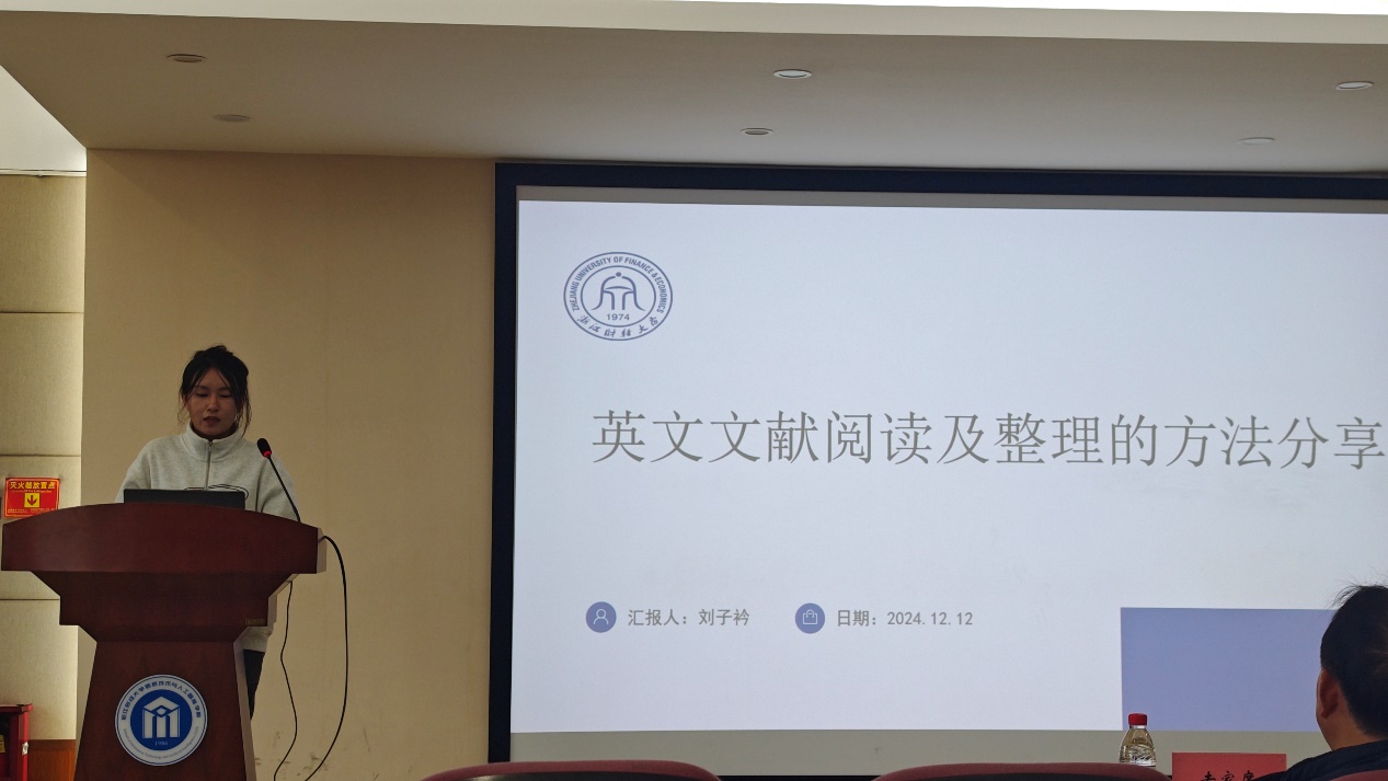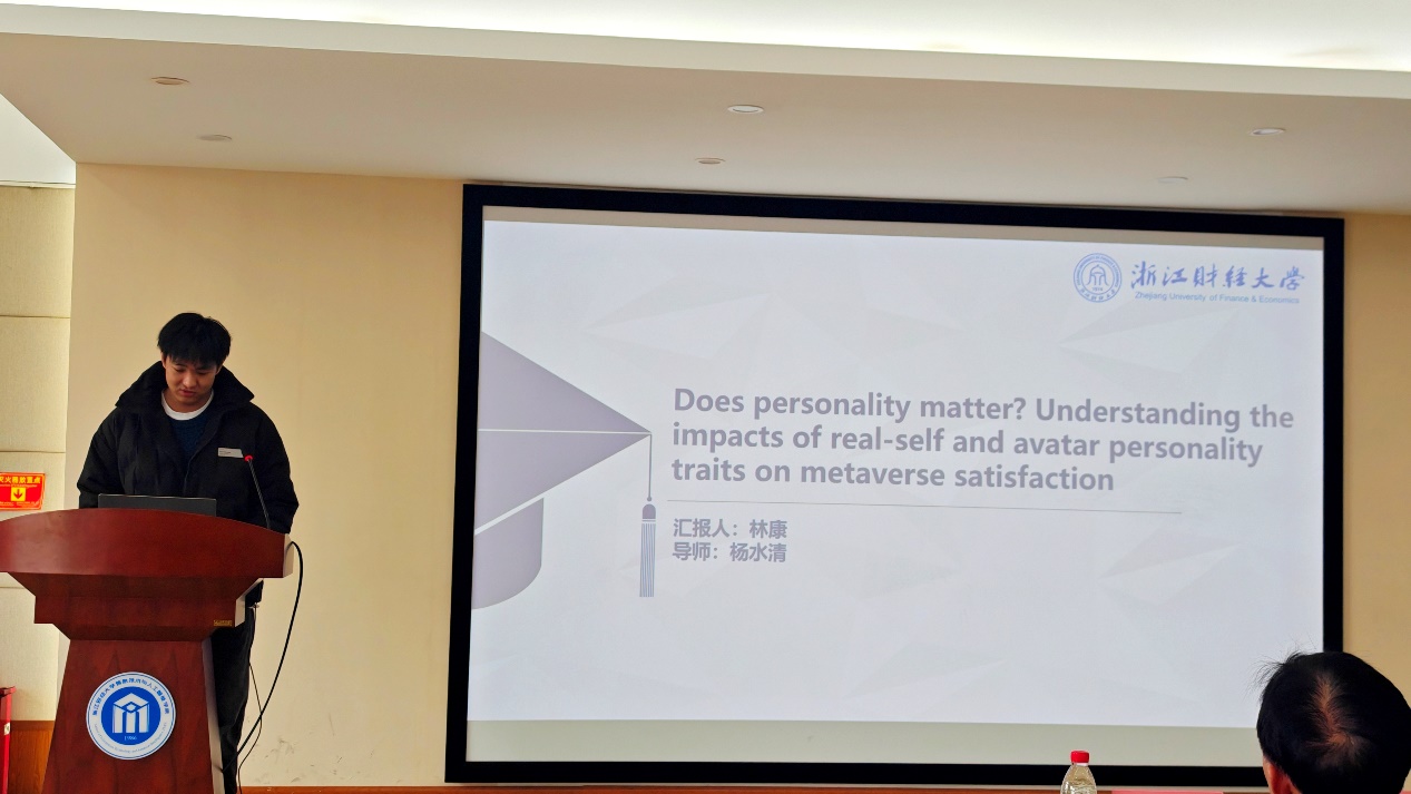 6名研究生主讲,邀请了张帅教授、何以凡博士做点评专家,近百名研究生参加,24级电子信息专业研究生王亚芳主持。主讲内容涵盖了理解真实自我和化身个性特征对虚拟世界满意度的影响、基于MGWR和SHAP模型的我国城市空间形态与碳排放的非线性空间关系、英文文献阅读及整理的方法分享等热门话题。