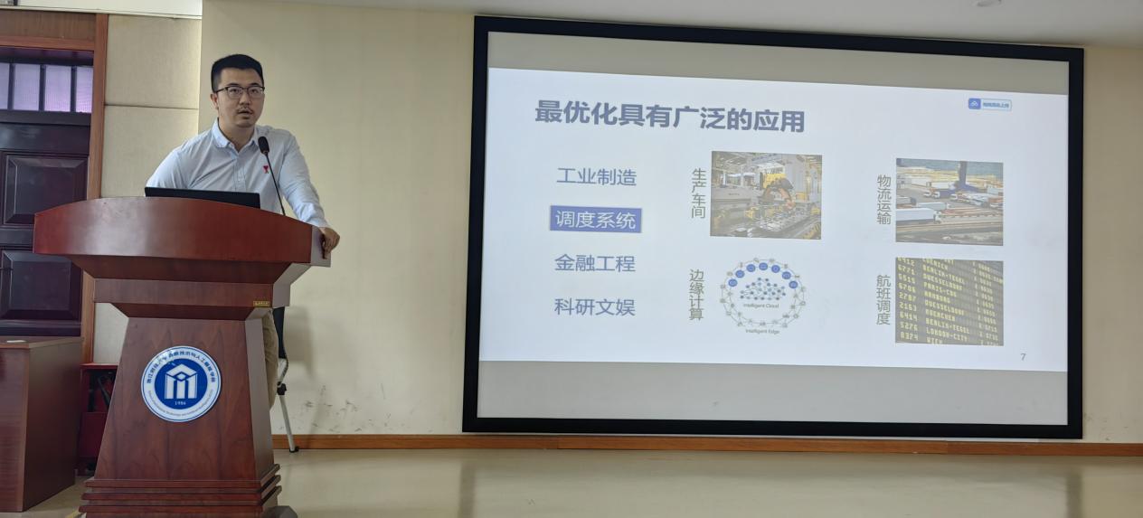 伍天骐老师作为“智能计算与调度优化”科研团队代表,详细介绍了人工智能在智能计算与复杂优化中的应用。伍老师通过列举最优化方法在工业制造、金融工程、科研文娱等多个领域的实际运用案例。
