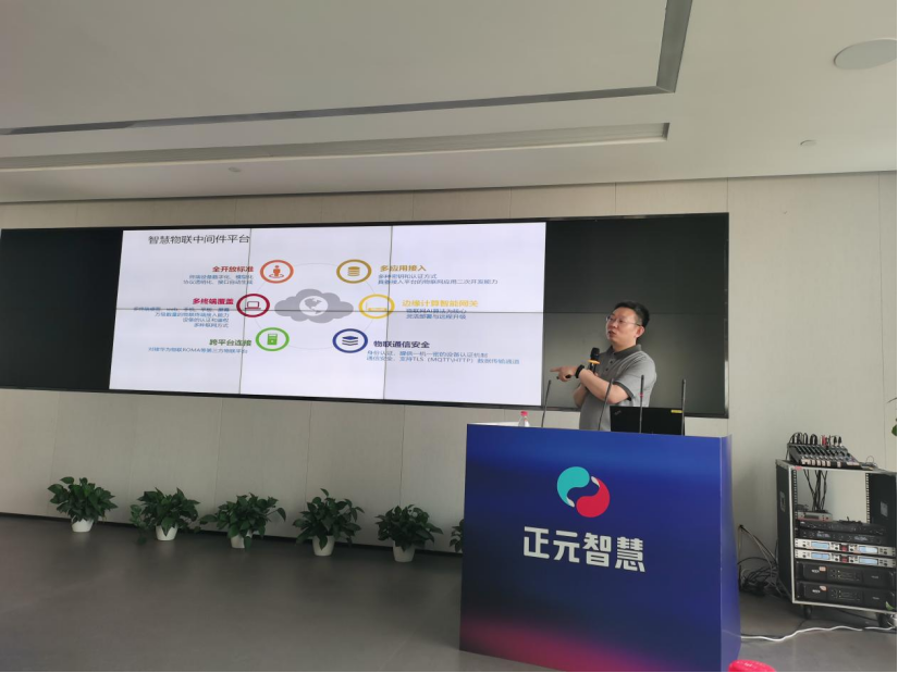 师生一行首先参观了正元智慧科技展览馆,公司解说员介绍了浙江正元智慧科技股份有限公司近30年的发展历史。公司从最初的校园一卡开始,发展成为集新一代AIoT(人工智能+大数据+区块链+云计算+ 物联网)数字技术,构建了物联中台、业务中台、数据中台、算法中台,推出一体化智能化的协同融合服务平台,打造多技术融合、多主体协同、多场景应用的智慧校园全面解决方案的上市公司。