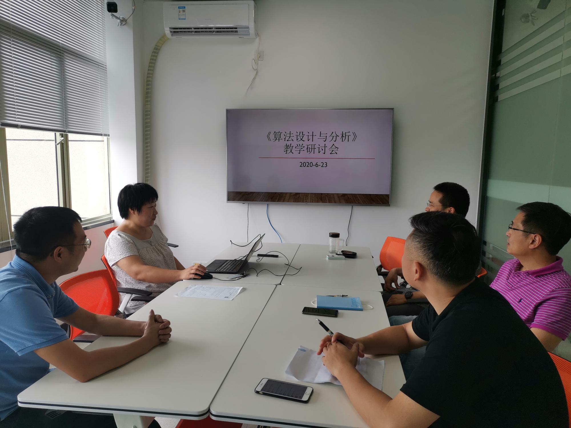 2020年6月23日中午,《算法设计与分析》课程团队在9301B研讨室召开课程建设研讨会。会议由刘亚楠主持,张志强、陈伟锋、刘玉华、陈琰宏等团队成员参加了会议。