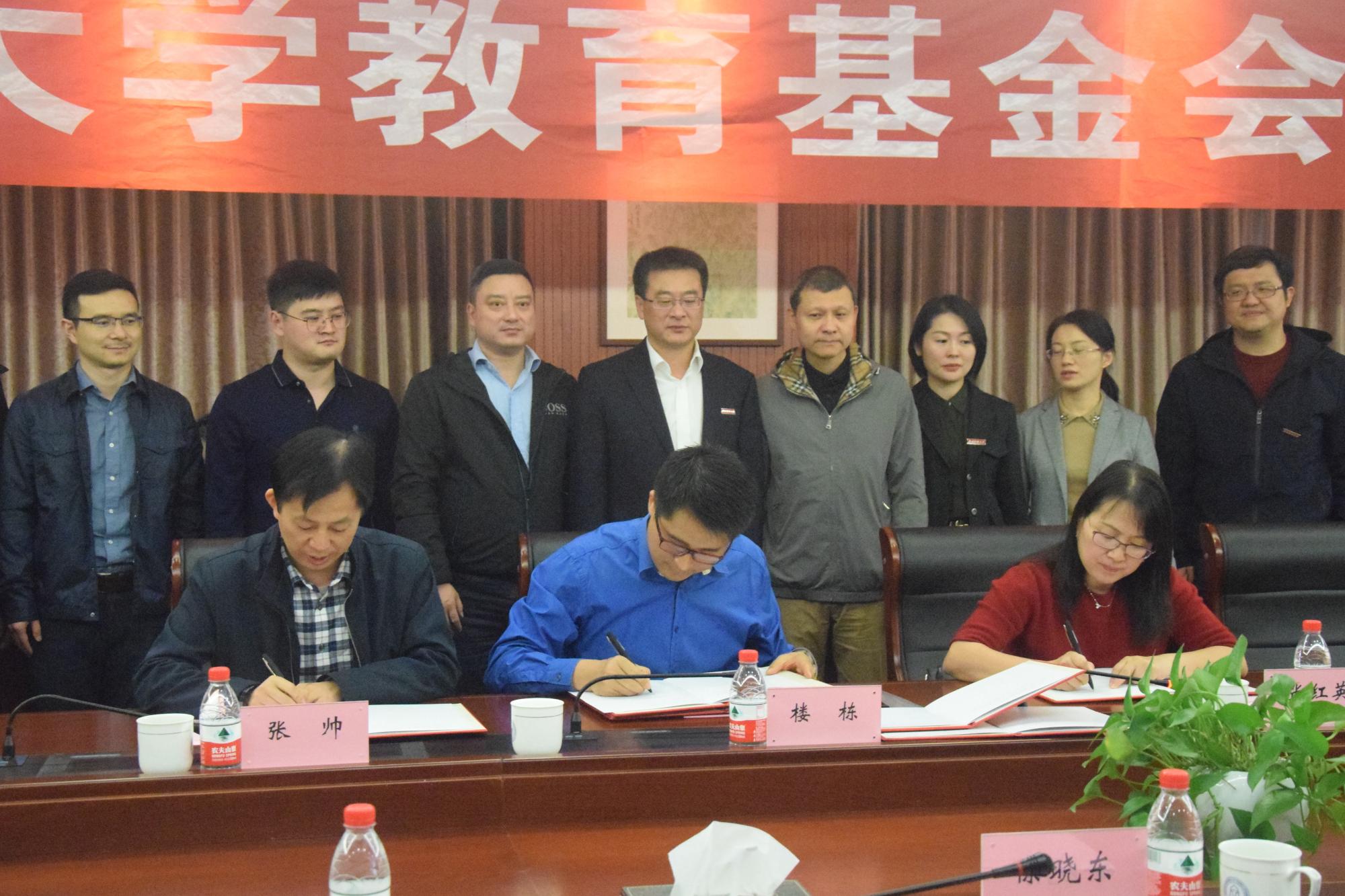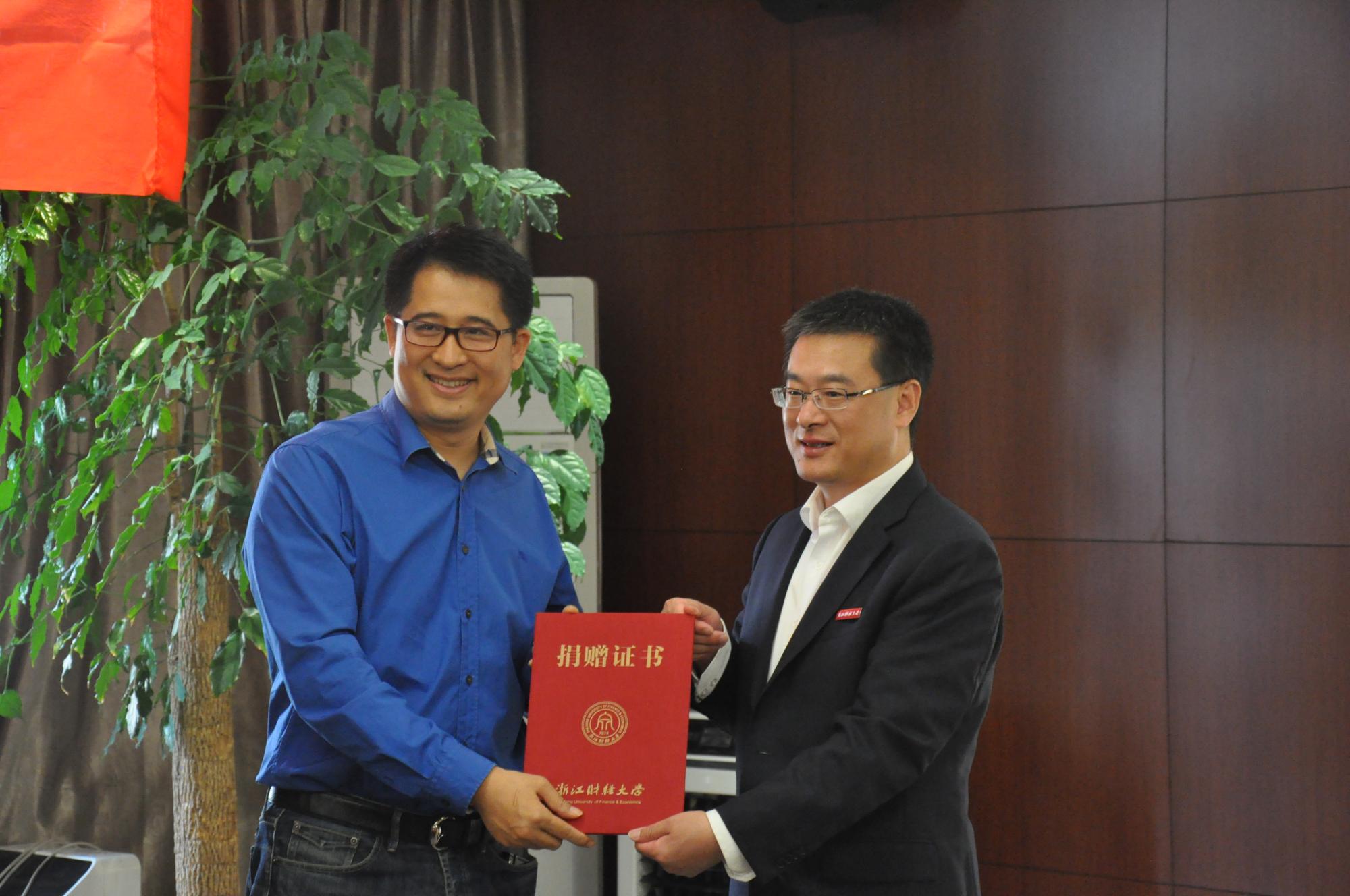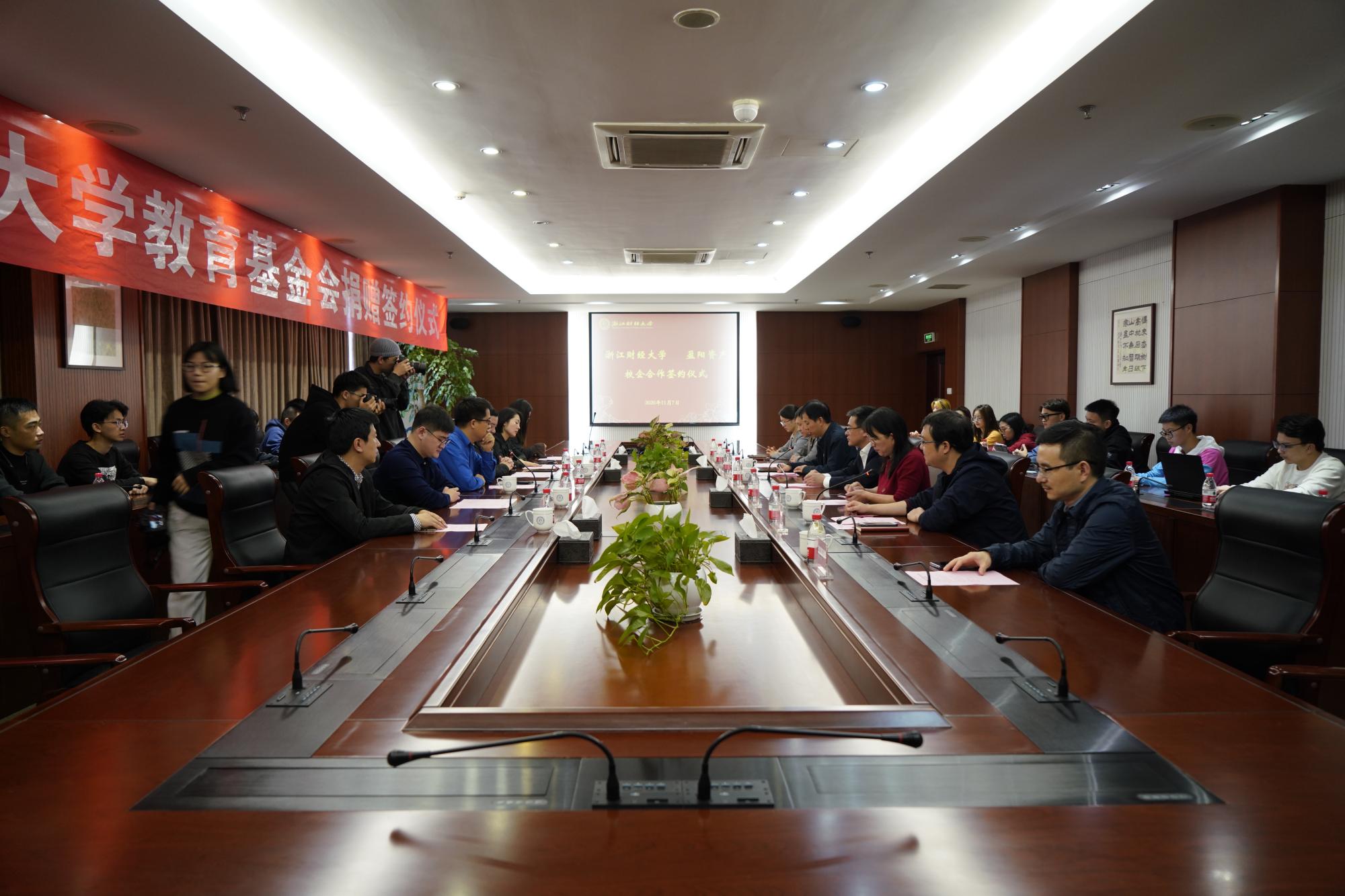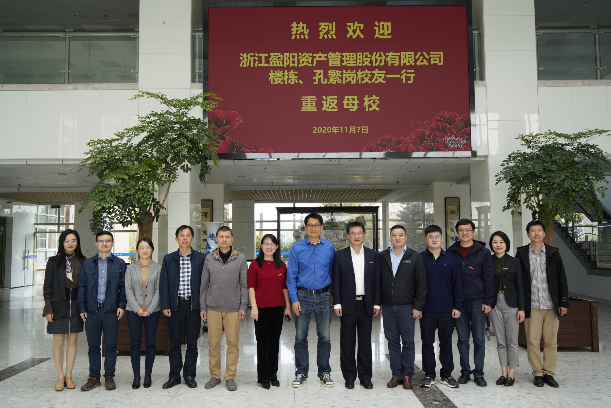 与浙江盈阳资产管理股份有限公司校企合作项目签约仪式在下沙校区举行。盈阳资产创始人楼栋校友、总经理孔繁岗校友、技术总监赵海滨,H次元