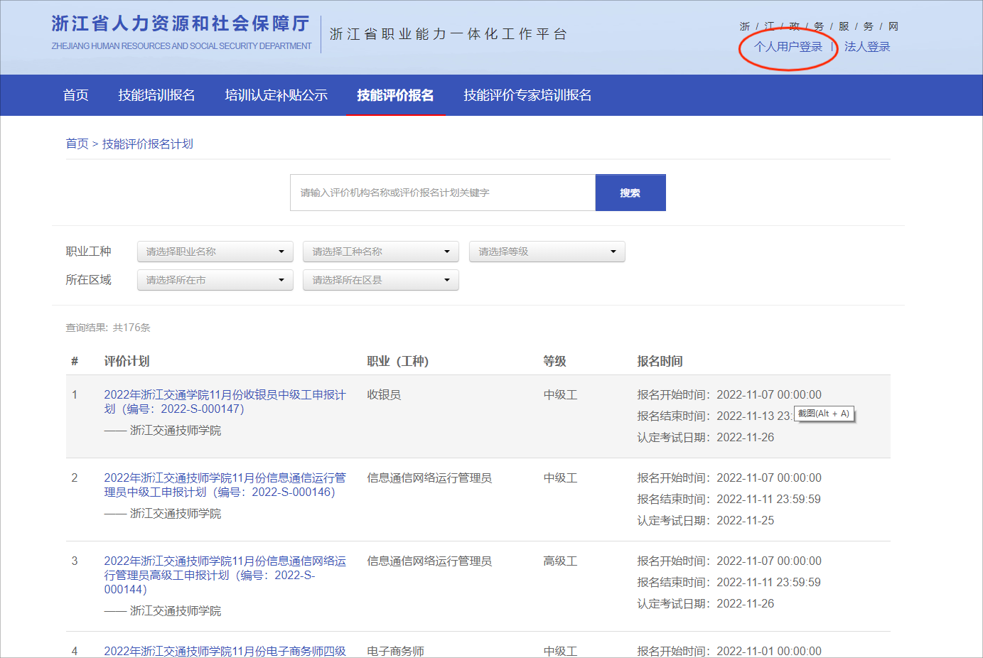(一)登录网址:浙江省人力资源和社会保障厅浙江省职业能力一体化工作平台 //zynl.rlsbt.zj.gov.cn